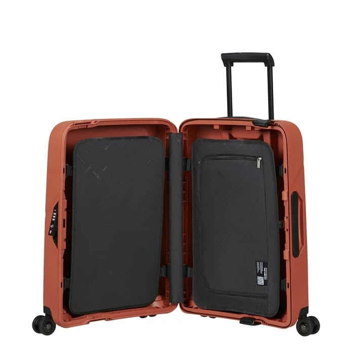 Met de Magnum ECO collectie heeft Samsonite een serie op de markt gebracht die symbool staat voor het streven naar duurzaamheid met behoudt van de sterke kwaliteit. Deze Samsonite Magnum ECO Spinner 55 is op een innovatieve en duurzame manier gemaakt in Europa. De buitenkant is gemaakt van 200 gerecyclede yogurtpotjes en de binnenkant gemaakt van 7 gerecyclede petflessen. Deze innovatieve manier van produceren heeft ervoor gezorgd dat deze Magnum ECO Spinner een licht, sterk en bovendien een duurzaam product is.