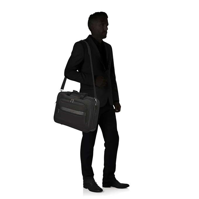 Draag de Samsonite Vectura Evo Bailhandle 15.6” comfortabel in de hand, over de schouder of bevestig de tas aan een trolley met behulp van een smart sleeve op de achterzijde. De tas biedt opbergruimte voor grote en kleine eigendommen dankzij diverse organisatievakken. Het voorvak heeft aan de binnenzijde een organizer met opbergvakjes voor onder andere een telefoon, pennen en pasjes. Twee ruime hoofdvakken zijn perfect voor het opbergen van een 15.6” laptop, een tablet en A4 formaat documenten. Daarnaast kan een telefoon of tablet op elk moment worden opgeladen dankzij een ingebouwde USB-aansluiting. Dankzij het draagcomfort en de praktische indeling is het de ideale tas voor werk of een zakenreis.